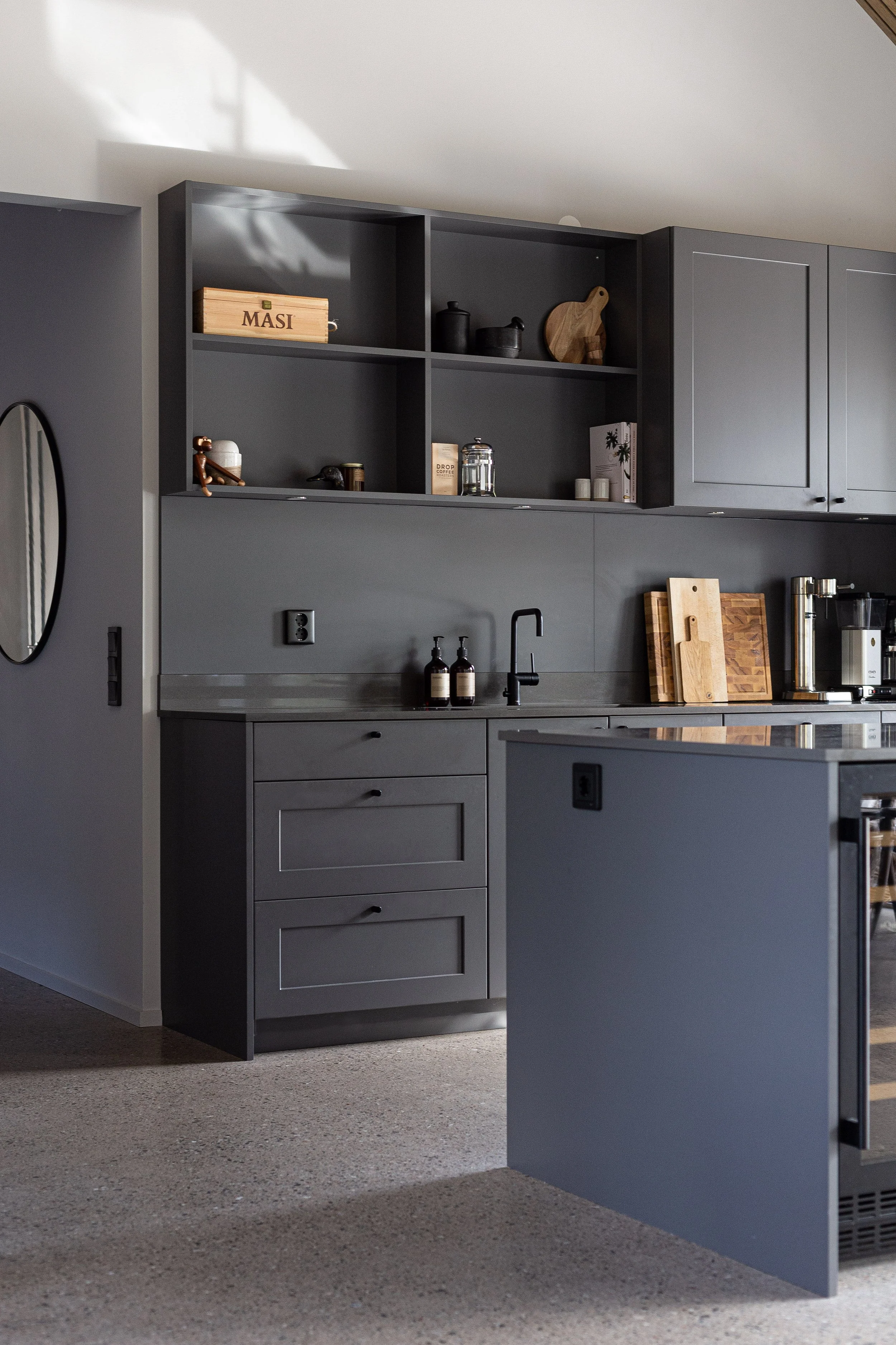 Modellen Strata kan produseres i Ask, Eik eller MDF dersom man ikke ønsker tekstur. Vi mener at Ask og eik har en vakker og karakteristisk årring som er godt synlig, selv om dørene er malt med en dekkende farge, noe som gir et malt kjøkken mer personlig og liv. Disse tresortene har ulike kvaliteter når det kommer til om den skal males eller beises. Ask maler vi alltid og Eik beiser vi alltid, dersom kunden ikke vil ha noe annet.